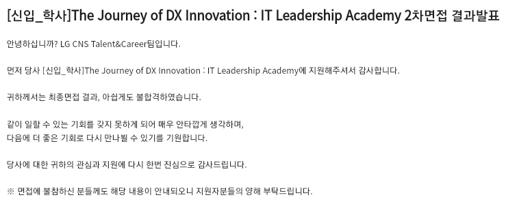 그래도 먼저 최종합격을 받은 기업이 있어서 해당 결과를 받아들일 수 있었습니다.
